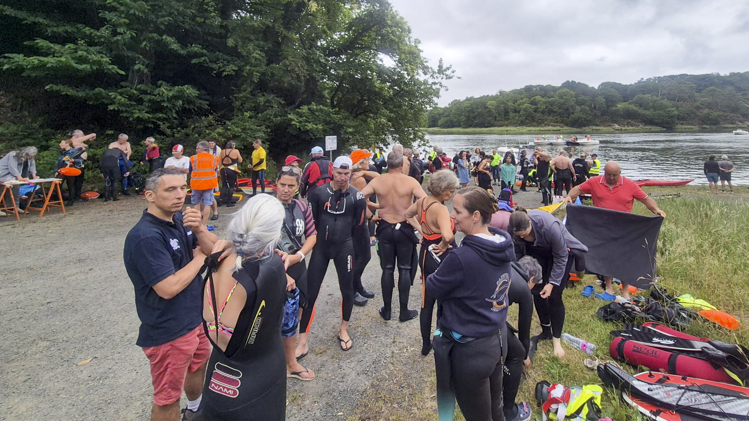 12 nageuses/nageurs/appuis pour cette sortie dominicale dans la brume entre Coz Castel et le pont de Lézardrieux.